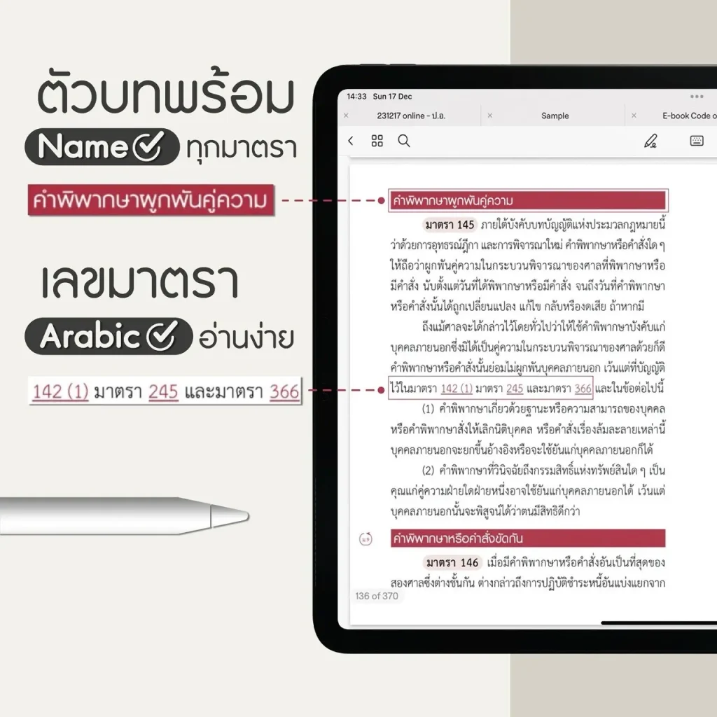 ประมวลกฎหมายฉบับ EBOOK พร้อมระบบ Advanced Hyperlink ใช้งานใน iPad/Tablet/โทรศัพท์/คอมพิวเตอร์